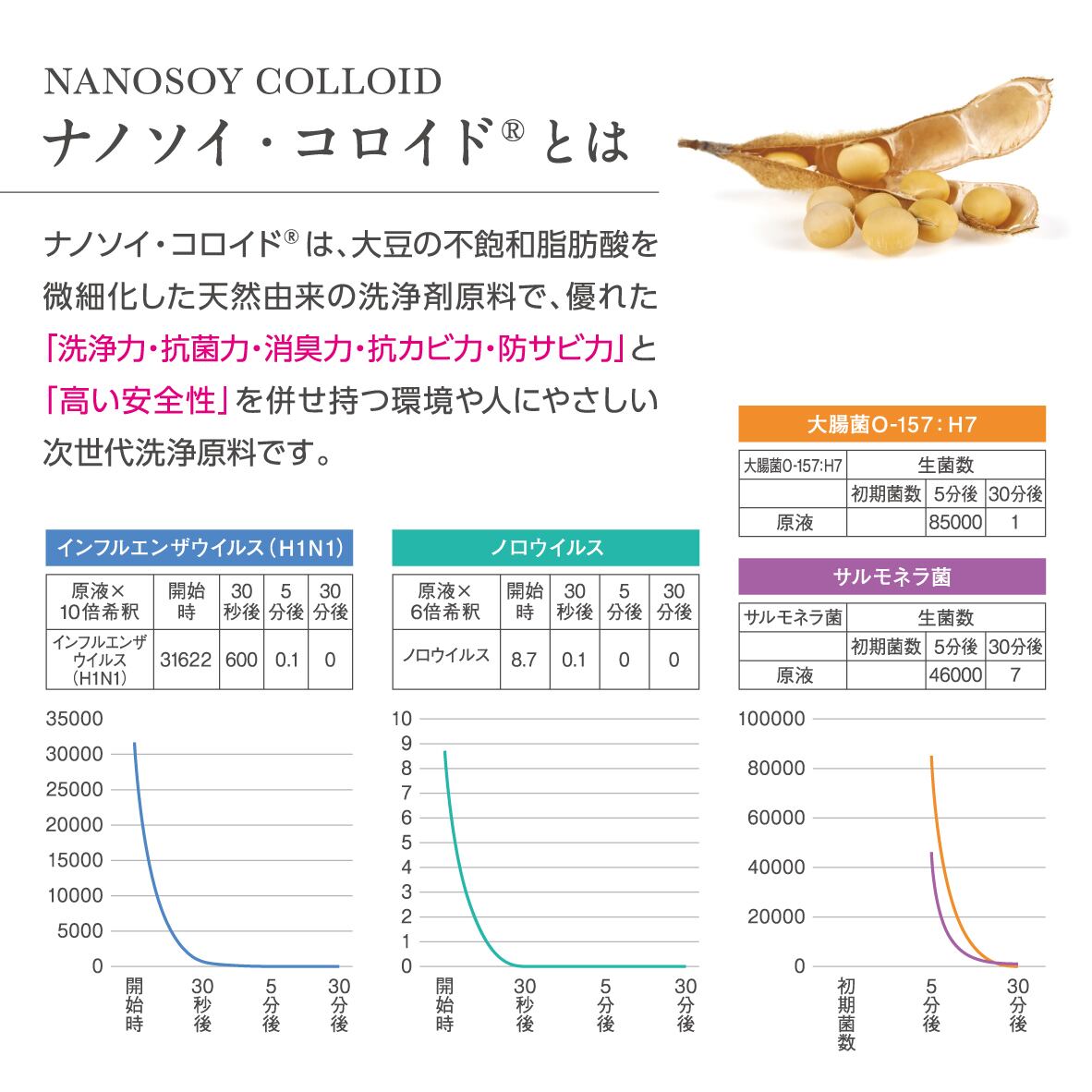 mamecoは大豆由来の「ナノソイ・コロイド®」を配合した多機能除菌・消臭剤。